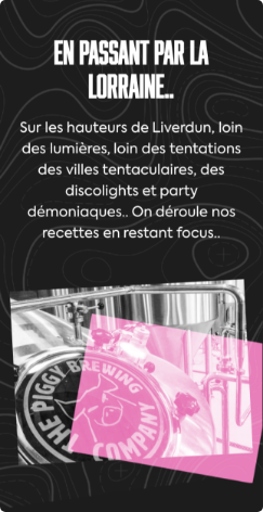 Notre réponse s’est effectivement axée sur la fusion de leur site vitrine et de leur e-shop afin de livrer un concentré de services et surtout, de miser copieusement sur une expérience e-shop sur mobile. Piggy Brewing sortant des nouveaux brassins fréquemment, on peut presque parler de collections capsules, phénomène largement relayé sur leurs réseaux sociaux, où les beer lovers et les afficionados sautent facilement sur la boutique en ligne. Nous avons donc mis en place une expérience responsive ultra réactive, permettant de shopper en toute mobilité. Une expérience soooo fluide, qui ressemble presque à une app. En somme, c’est une belle collaboration qui permet d’étendre l’univers de marque digital de Piggy pour encore plus de goût-rmandise !